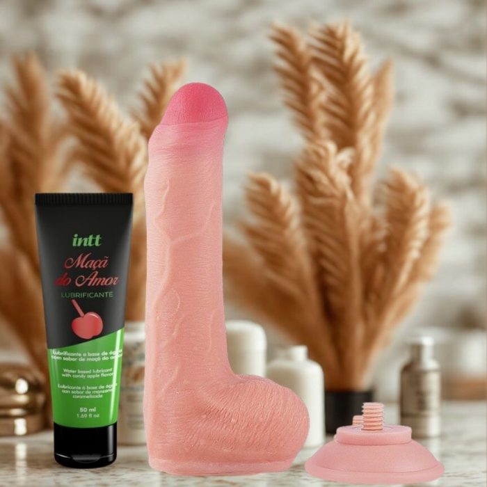 Experimente o prazer com um toque doce e realista. O Kit combina o Lubrificante Beijável Maçã do Amor e o Pênis Super Realístico Dupla Camada – Ventosa. Perfeito para momentos íntimos mais suaves e intensos.